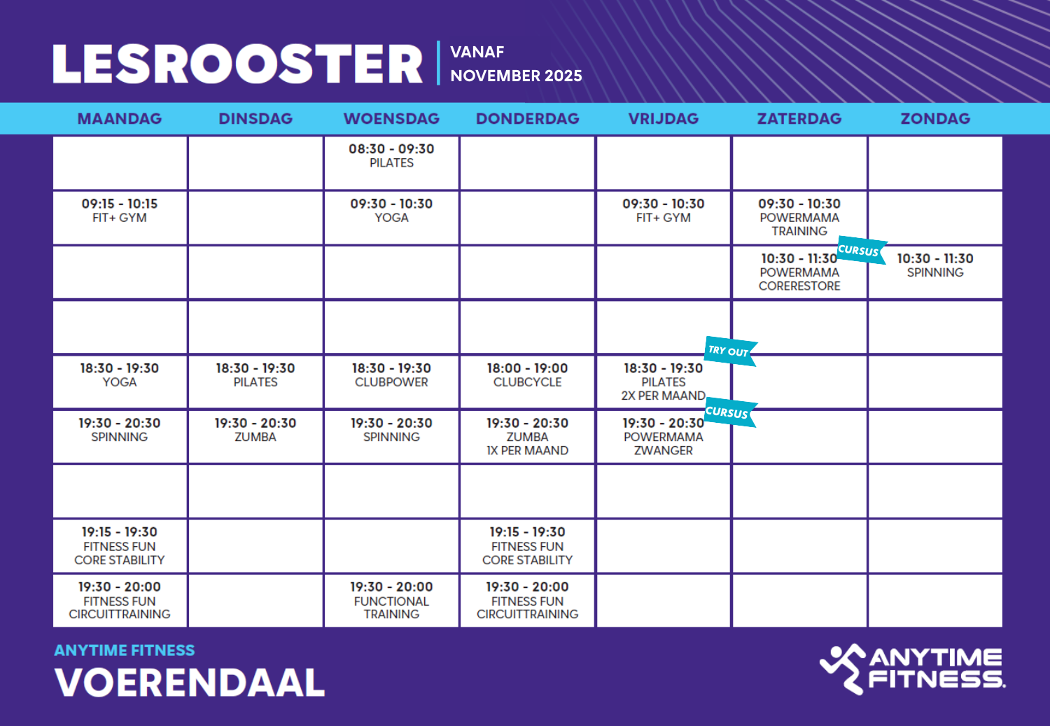 Kijk op ons actuele groepslesrooster voor het complete aanbod.